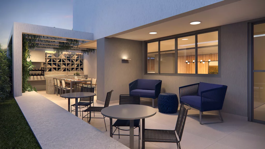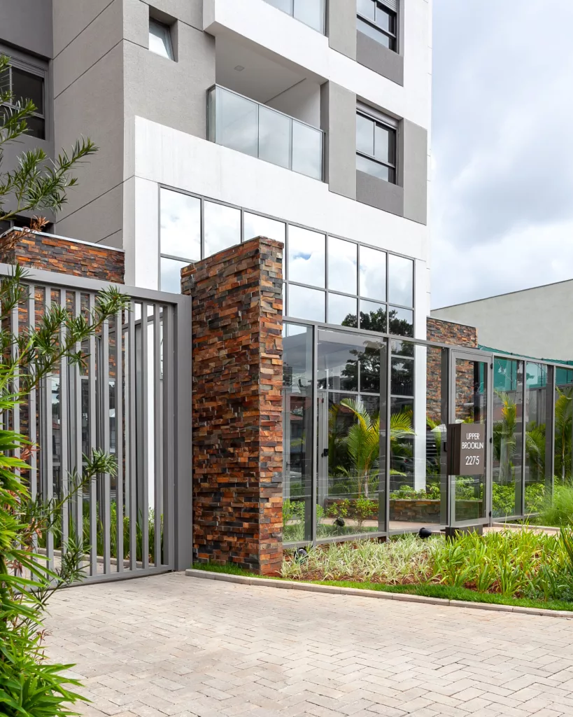 Modernidade e elegância traduzem a fachada do Upper. Terraços com guarda-corpo em vidro e alumínio e com uma vista acima de qualquer expectativa. Hall de entrada avançado e com portas de vidro duplas, que impacta pelo design e exclusividade. A arquitetura e a decoração do hall social conferem mais estilo e conforto ao ambiente, seja para quem está de passagem, seja para quem para uns minutos por lá.
