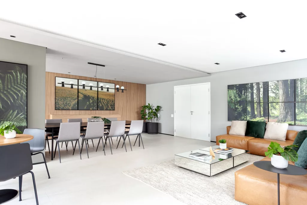 A arquitetura e a decoração do hall social conferem mais estilo e conforto ao ambiente, seja para quem está de passagem, seja para quem para uns minutos por lá.